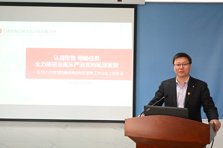 3月2日,咸陽(yáng)陶瓷院2021年黨風(fēng)廉政建設(shè)和反腐敗工作會(huì)議在咸陽(yáng)召開(kāi)。會(huì)議深入貫徹黨的十九大和十九屆四中、五中全會(huì)以及十九屆中央紀(jì)委五次全會(huì)精神,落實(shí)2021年度中國(guó)建材集團(tuán)、總院黨風(fēng)廉政建設(shè)和反腐敗工作會(huì)議部署要求,對(duì)咸陽(yáng)陶瓷院2020年黨風(fēng)廉政建設(shè)和反腐敗工作情況進(jìn)行回顧總結(jié),安排部署2021年工作任務(wù)。院黨委書(shū)記王華、院長(zhǎng)胡利明出席會(huì)議并講話?傇杭o(jì)委委員、咸陽(yáng)陶瓷院副院長(zhǎng)白戰(zhàn)英傳達(dá)了十九屆中央紀(jì)委五次全會(huì)精神和集團(tuán)、總院黨風(fēng)廉政建設(shè)和反腐敗工作會(huì)議精神;院黨委副書(shū)記、紀(jì)委書(shū)記常豪作了題為《發(fā)揮全面從嚴(yán)治黨引領(lǐng)保障作用,推動(dòng)咸陽(yáng)陶瓷院高質(zhì)量發(fā)展》的工作報(bào)告。