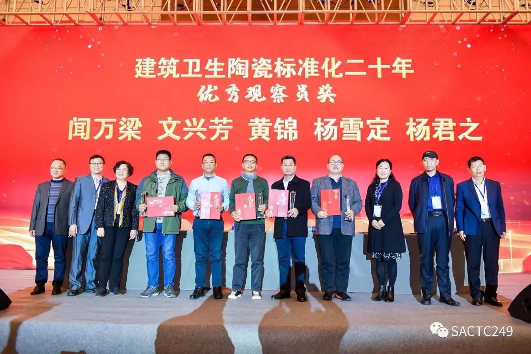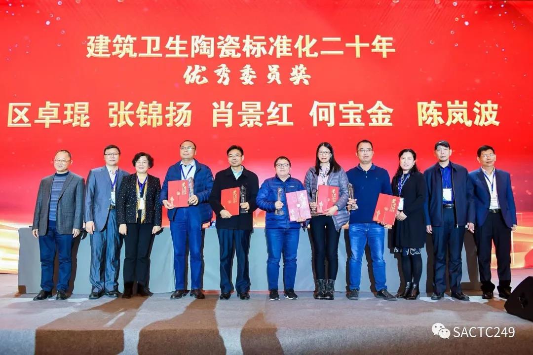 會上還對全國建筑衛(wèi)生陶瓷標(biāo)準(zhǔn)化技術(shù)委員會二十年先進(jìn)人物進(jìn)行了表彰,授予:尹虹、繆斌、王巍建筑衛(wèi)生陶瓷標(biāo)準(zhǔn)化工作二十年功勛人物獎;張旗康、宋子春、李瑩、盧廣堅、李列林、麥卓榮、嚴(yán)邦平建筑衛(wèi)生陶瓷標(biāo)準(zhǔn)化工作二十年卓越成就獎;區(qū)卓琨、張錦揚、肖景紅、何寶金、陳嵐波建筑衛(wèi)生陶瓷標(biāo)準(zhǔn)化工作二十年優(yōu)秀委員獎;聞萬梁、文興芳、黃錦、楊雪定、楊君之建筑衛(wèi)生陶瓷標(biāo)準(zhǔn)化工作二十年優(yōu)秀觀察員獎。