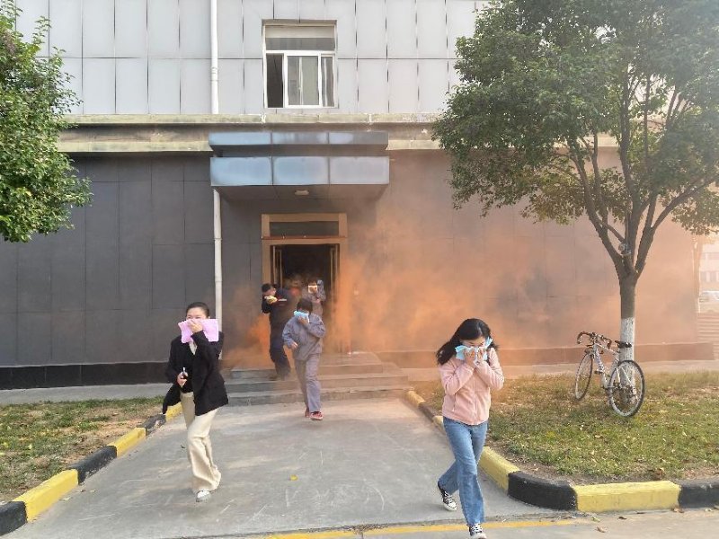 培訓后,按照安排安環(huán)部迅速組織各部門安全員、新員工、保安保潔及餐廚人員40多人在辦公樓展開滅火逃生演練,隨著一聲“著火了”大家有序左手用濕毛巾捂鼻口右手摸著墻冒著煙霧快速從辦公樓逃生門魚貫而出。
