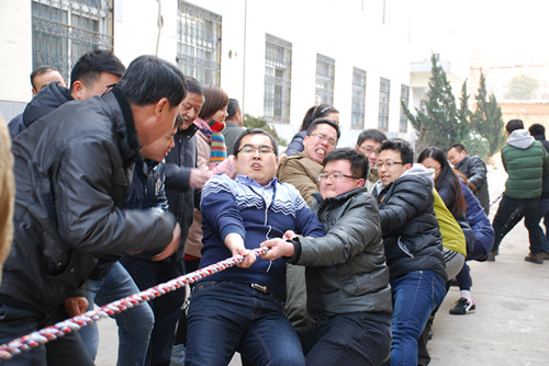 2月2日,在新年即將來(lái)臨之際,我院工會(huì)組織開展迎新春職工體育運(yùn)動(dòng)會(huì)。 運(yùn)動(dòng)會(huì)上,最為精彩激烈的要數(shù)拔河比賽。比賽前,各工會(huì)小組紛紛組織好自己的隊(duì)伍,六支代表隊(duì)的隊(duì)員們個(gè)個(gè)精神抖擻,團(tuán)結(jié)一心,奮力拼搏。當(dāng)比賽的哨聲一響起,隊(duì)員們高呼著“一二,一二”,雙手緊握長(zhǎng)繩,勁往一處使,院領(lǐng)導(dǎo)們也在隊(duì)伍旁邊助陣加油,比賽中常出現(xiàn)勢(shì)均力敵的精彩“拉鋸戰(zhàn)”,此起彼伏的加油聲和助威聲使比賽場(chǎng)面熱火朝天。經(jīng)過(guò)緊張激烈的角逐,機(jī)械裝備部隊(duì)獲第一名;物業(yè)保衛(wèi)部隊(duì)獲第二名;機(jī)械廠隊(duì)獲得第三名。 隨后,五樓大會(huì)議室分別組織了趣味神投手、夾豆子、趣味套圈、吹蠟燭等比賽。每一個(gè)比賽項(xiàng)目不僅鍛煉大家的動(dòng)手動(dòng)腦能力,也加強(qiáng)大家在工作中能夠團(tuán)結(jié)協(xié)作的精神。通過(guò)這次工會(huì)活動(dòng),展現(xiàn)了我院廣大職工斗志昂揚(yáng)和團(tuán)結(jié)向上的精神風(fēng)貌,活躍了大家業(yè)余生活,同時(shí)增強(qiáng)了各部門之間的相互交流和溝通,凝聚了力量,推動(dòng)我院新一年工作再上新臺(tái)階。